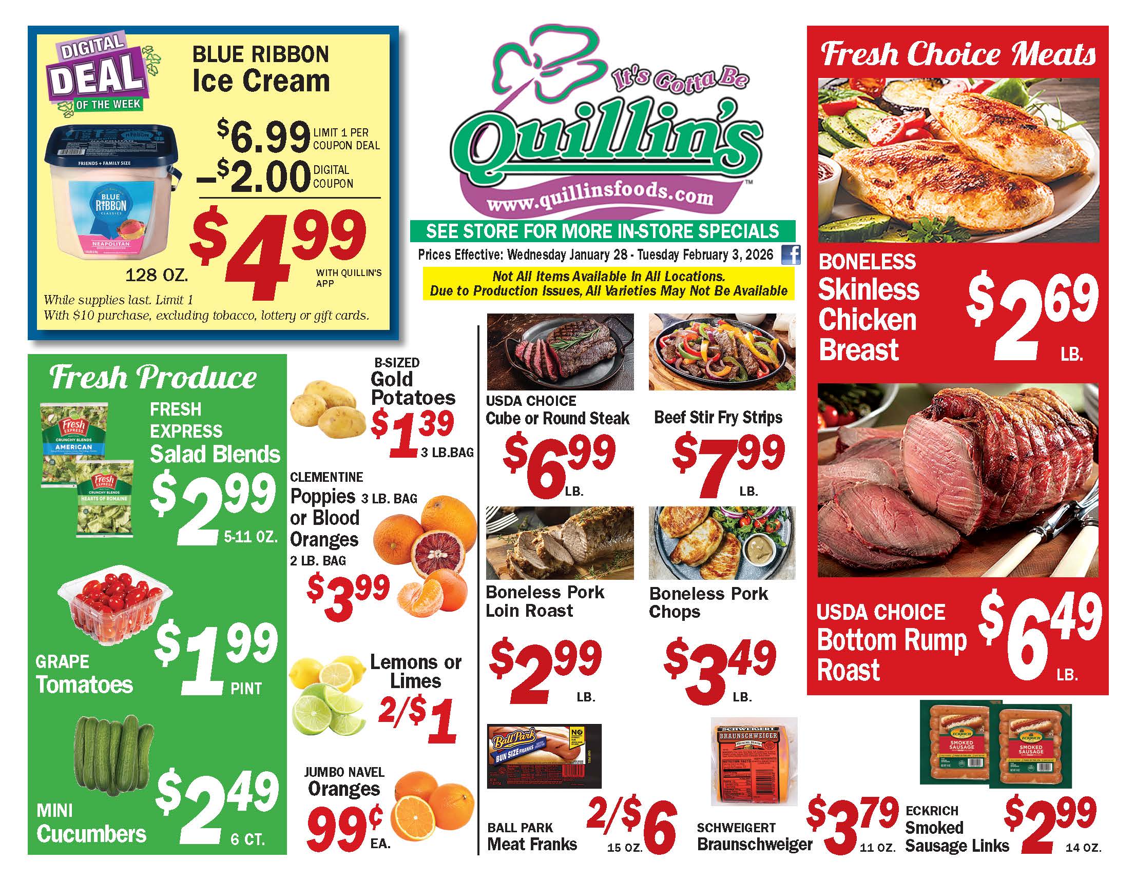 Check Out What’s Happening at Quillin’s This Week Quillin’s Quality Foods 7 Local Locations WEEKLY ADS UNBEATABLE PRICES! DOWNLOAD APP IN-STORE DIGITAL SAVINGS! Find Your Store La Crosse La Crescent Caledonia Lansing Waukon Monona West Union Visit Your Neighborhood Quillin’s!